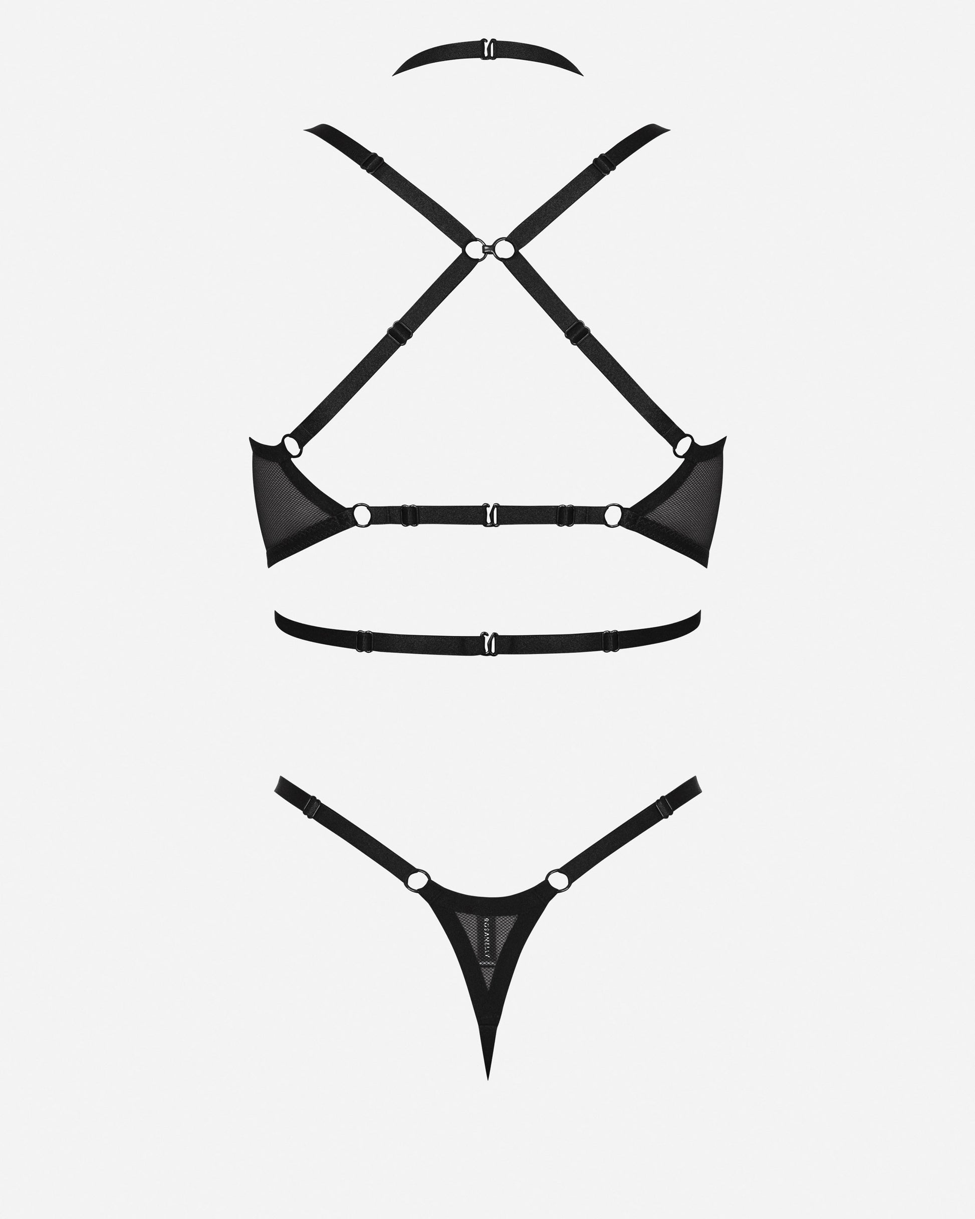 CORA Cupless Wire Bodysuit by ROSANELLY™ is an ultra sexy and modern wired bodysuit made up of delicate soft mesh and elastic straps combined with luxurious black hardware that gently stretch and adjust over your body. Fully adjustable with sliders.