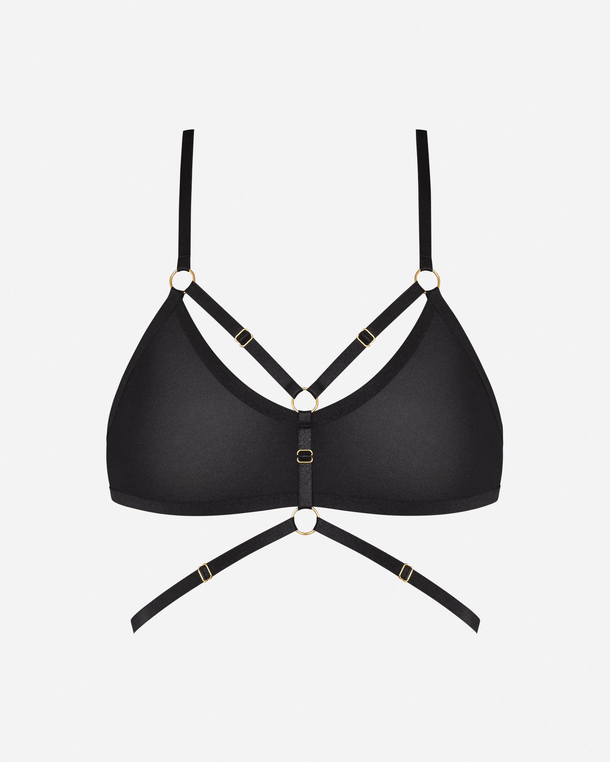ELSA Strap Bra by ROSANELLY™ is a super sexy soft bra made up of ultra soft mesh and satin strapping combined with 24k gold plated hardware. Fully adjustable, fits all sizes with adjustable gold plated sliders.