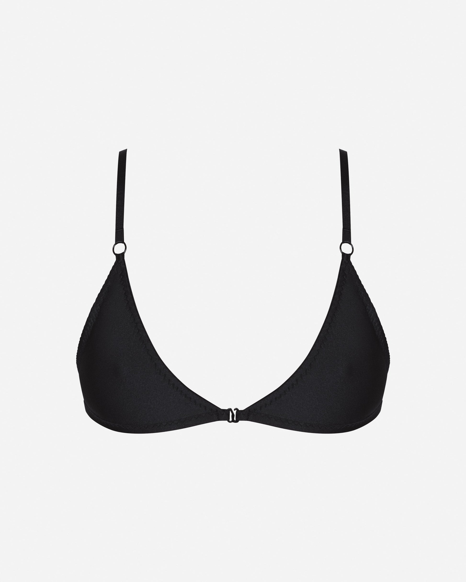 NERA Soft Bra by ROSANELLY™ is an ultra sexy and modern triangle bra made up of delicate stretchy satin and elastic satin straps combined with black hardware that gently stretch and adjust over your body. Fully adjustable with sliders.