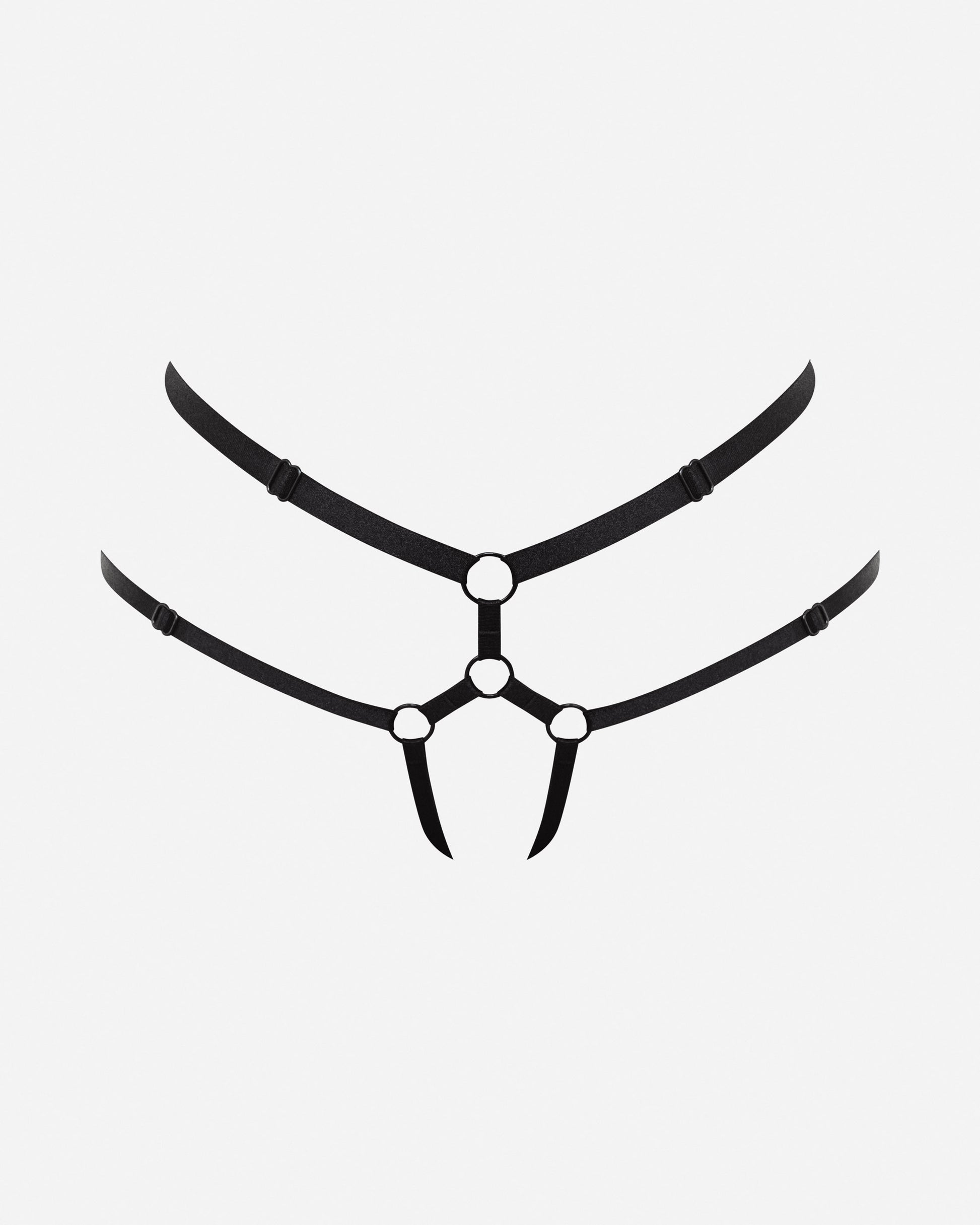 PAMELA Strap Panty by ROSANELLY™ is an ultra sexy and modern thong made up entirely of ultra soft satin strapping and black metal hardware. Fully adjustable with the sliders, fits everyone.