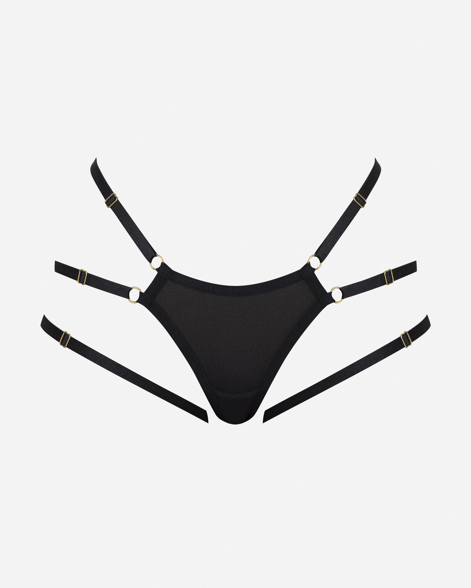 ROXY Strap Panty by ROSANELLY™ is an ultra sexy and modern strap string made up of delicate mesh and elastic straps combined with 24k gold plated hardware that gently stretch and adjust over your hips. Fully adjustable with sliders.