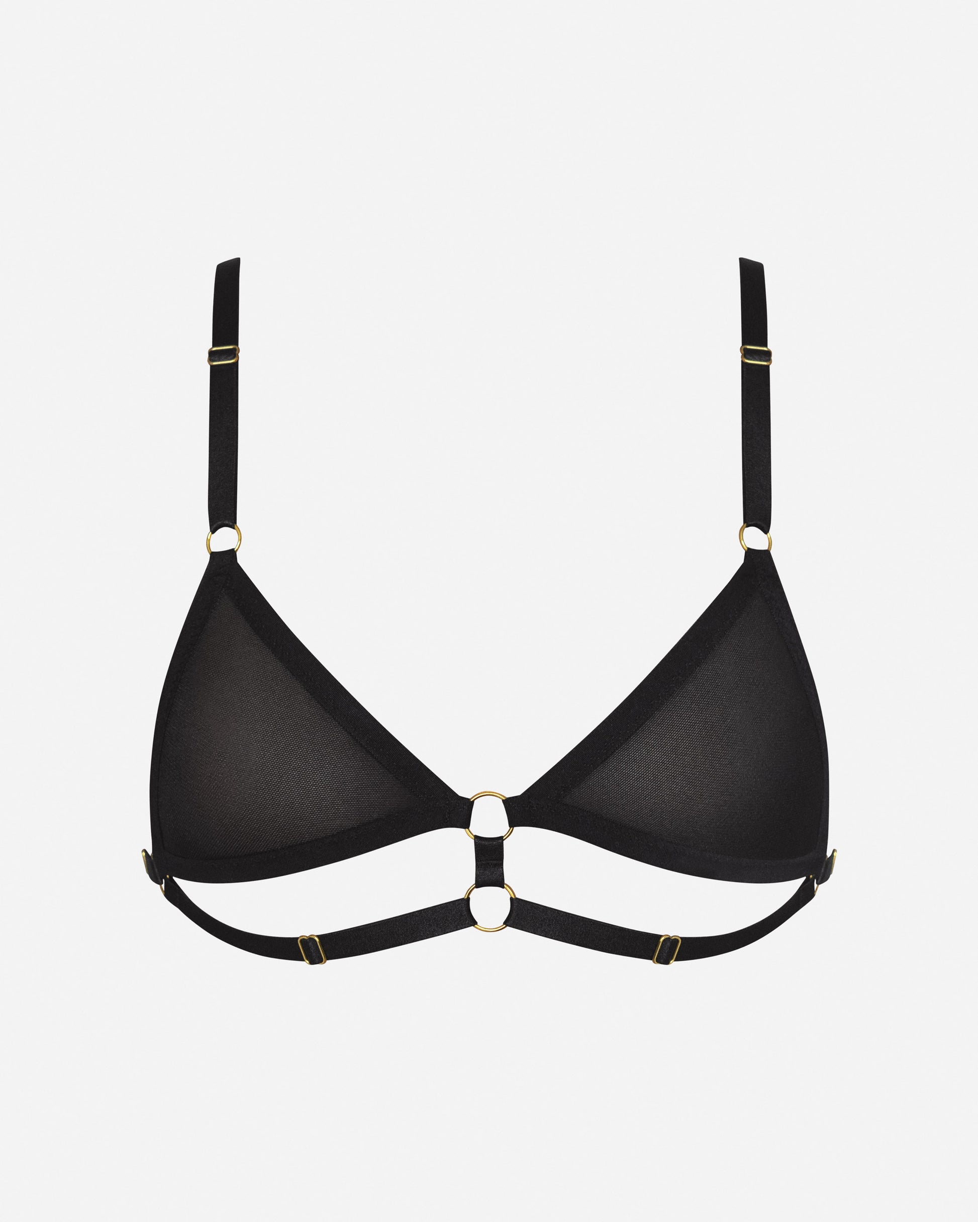 SANDRA Bra by ROSANELLY™ is a super sexy soft bra made up of ultra soft mesh and satin strapping combined with 24k gold plated hardware. Fully adjustable, fits all sizes with adjustable gold plated sliders.